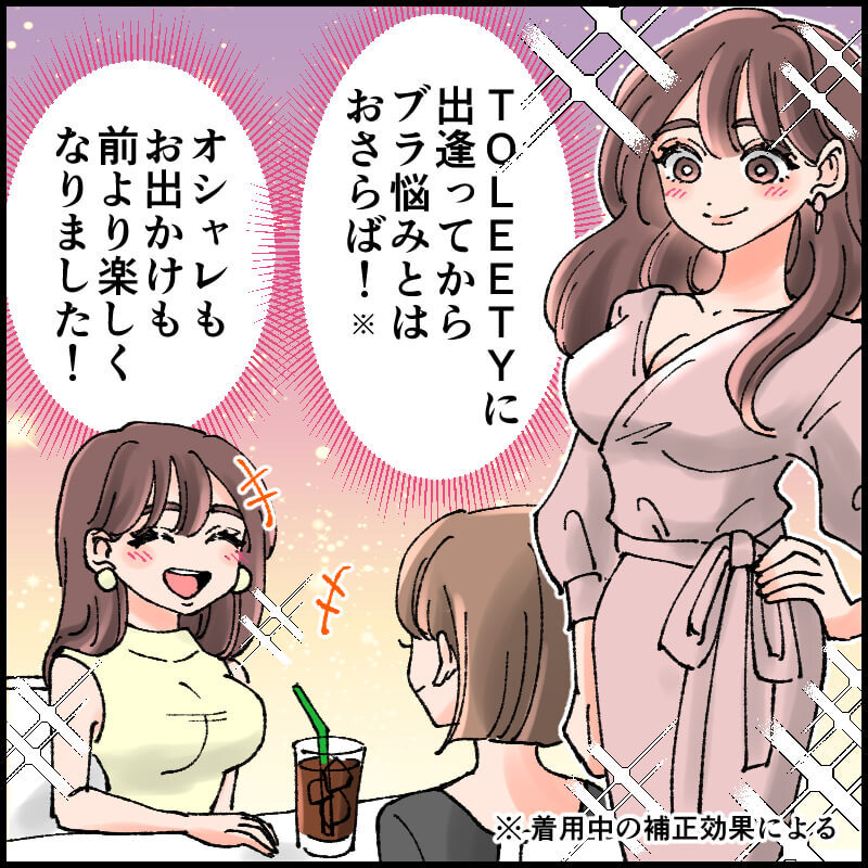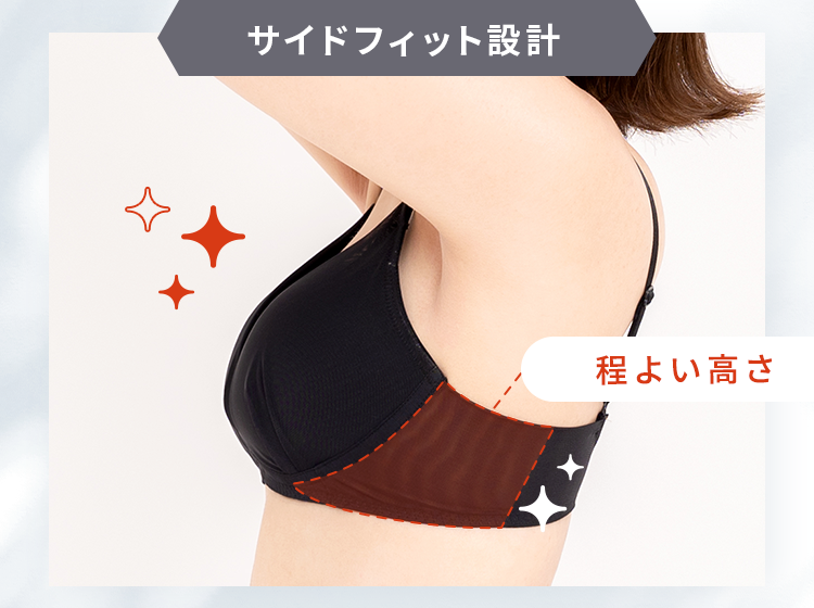 垂れ胸や離れ乳で背中のお肉が気になって上半身だけ大きく見えるのが悩みでした。このブラは背中から脇までしっかりと胸に寄せつつ、スッキリとキレイなスタイルに!もう他のブラじゃ物足りなくなってしまいました💦